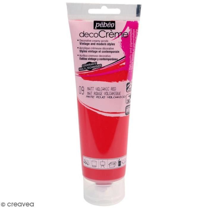 Peinture acrylique - PEBEO - DecoCrème - Rouge volcanique - 120 ml - Finition Mat