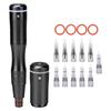 5. Patronnål, lätt att installera, dubbellagers låsnål, fast och ingen flygande nål, inget färgstänk, vilket betyder hög färgeffektivitet. Trådlös design med USB-laddning, inbyggt litiumbatteri med stor kapacitet, har även ett utbytbart batteri, och tatueringen är mer flexibel.