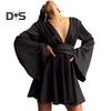 Denna eleganta damklänning är tillverkad av högkvalitativ polyester och erbjuder en avslappnad lös passform för ultimat komfort.. Det mjuka och lätta tyget ger en mysig känsla som du inte vill ta av dig. Denna klänning har en flödande fåll och utsvängda ärmar och har en lös passform som smickrar de flesta kroppstyper.. Satinfinishen tillför en touch av sofistikering med sin sexiga v-ringning..