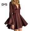Elegant satin V-ringning: Omfamna elegans med den satängsexiga v-ringningen på denna klänning. Den smickrande halsringningen framhäver dina nyckelben och ger en antydan till lockelse till din ensemble, perfekt för att göra ett statement på sammankomster eller dejtkvällar.