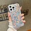 Simple Flower Pattern Luxury Glitter Case For iPhone 16 Pro Max 15 Pro 14 13 12 11 Slim Glossy Shockproof Hybrid PC TPU Clear Phone Cover
