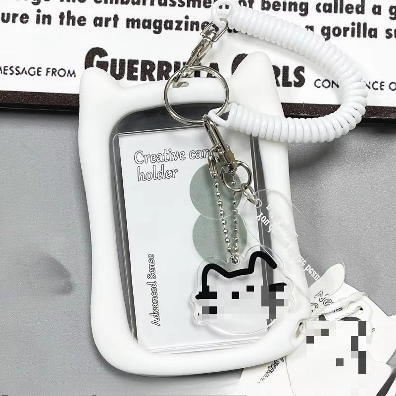 Kawaii Cat Transparent Acrylic Luxurious Photocard Holder Kpop Idol Card Protector Creative Bag Pendant Campus ID Storage Bags
