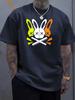 Unik T-shirt med rund hals och kaninskalledesign - Mjuk, Andningsbar, Maskintvättbar, Perfekt för sommarens utomhusaktiviteter
