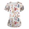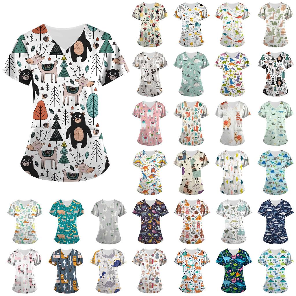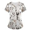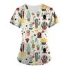 Kvinnors söta djur tryckta kortärmade V-ringade toppar Working Pocket Blus