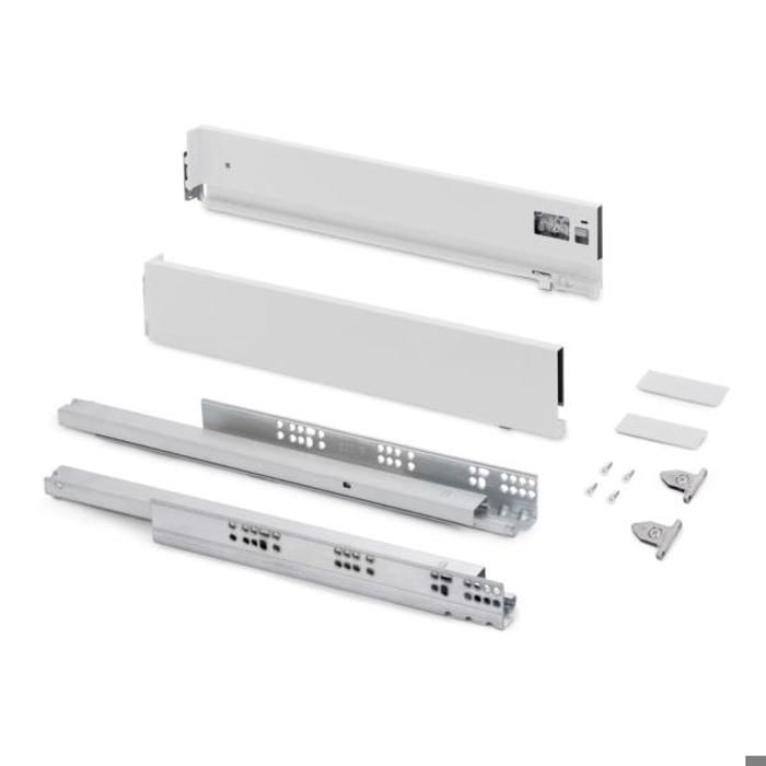 -emuca tiroir extérieur vertex avec réglages 3d hauteur 93mm, 40kg, profondeur 300mm, acier, peint en blanc