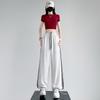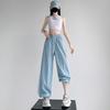 Nya Sommar Amerikanska Vardagsbyxor och Mjukisbyxor för Kvinnor Dragskor för Två Hög Midja Lös Smickrande Solskydd Vida Ben