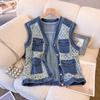 Väst för kvinnor Bomull Ärmlösa toppar Denimväst Oversize Casual Stora fickor Dragkedjeväst