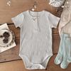 Denna stilfulla krypdräkt för bebisar är designad för komfort och mode. Tillverkad av mjuk bomull, säkerställer den en skonsam beröring på din babys känsliga hud.. Rompern har en enfärgad design med ett subtilt piquérandigt mönster, vilket ger den en chic och modern look.. Med korta ärmar erbjuder den andningsförmåga och rörelsefrihet, perfekt för aktiva småttingar.. Idealisk för alla tillfällen, denna romper ger en "Ins Style"-estetik till din babys garderob.
