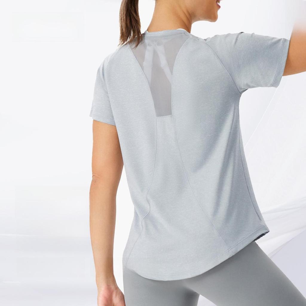 Dam Lös Passform Yoga Topp – Andningsbar Meshrygg, Snabbtorkande Löpar T-shirt, Kortärmad Träningsblus