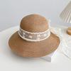 Sweet Pearl Lace Bow Straw Hat Women's Beach Hat Versatile Straw Hat Travel Sunscreen Sunshade Hat