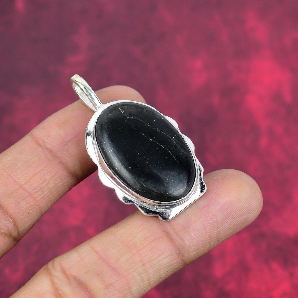Shungit Hänge, 925 Massivt Sterling Silver Ädelstenssmycken, Handgjort Hänge, För Thanksgiving