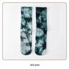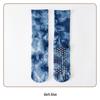 Damfärgglada batikmönstrade halkfria frottésockor i mellanhöjd av bomull för yoga och pilates