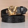 Herrbälte i präglat läder med drakmönster och automatiskt spänne