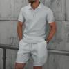 Men's Waffle Zipper Solid Color Short Sleeve Shorts Casual Suit