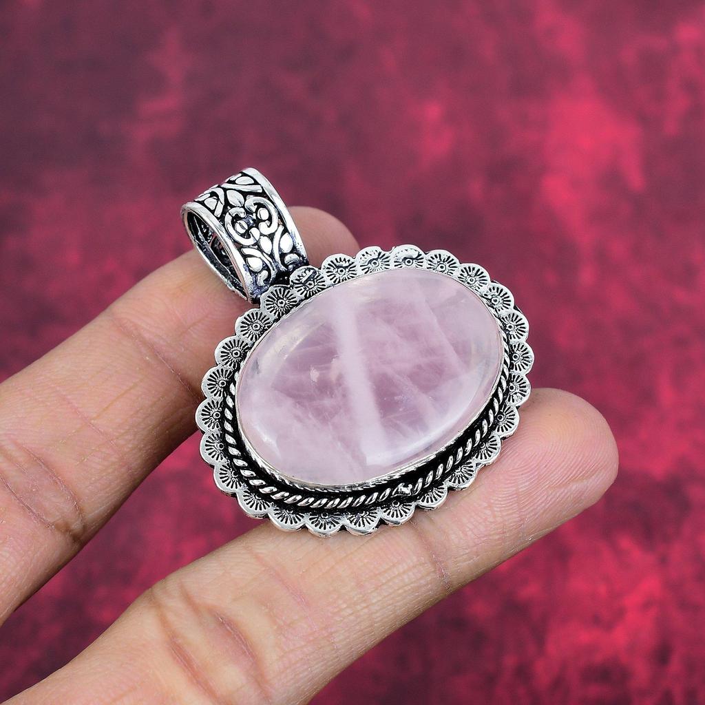 Smycken i rosenkvarts, 925 Sterlingsilverhänge Massivt Handgjorda Ädelstenssmycken, Gåvor Till Fru Helt Nytt Hänge