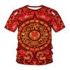 Herr T-shirt med livfullt mönster från Mayakulturen, kortärmad med rund hals och bekvämt tyg av polyesterfiber, lämplig för sommarens vardagsbruk