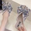 Tofflor Dam 2024 Nya Blommiga Rosett Baotou Sandaler Mode Platt Casual Pärldekoration Mules Damer Utomhus Strandskor Tofflor