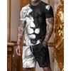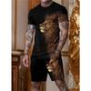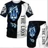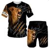 Summer Round Neck 3D Lion Printed Set Fashionable and Casual Short Sleeved Shorts Men's Clothing Sets Sport Wear
