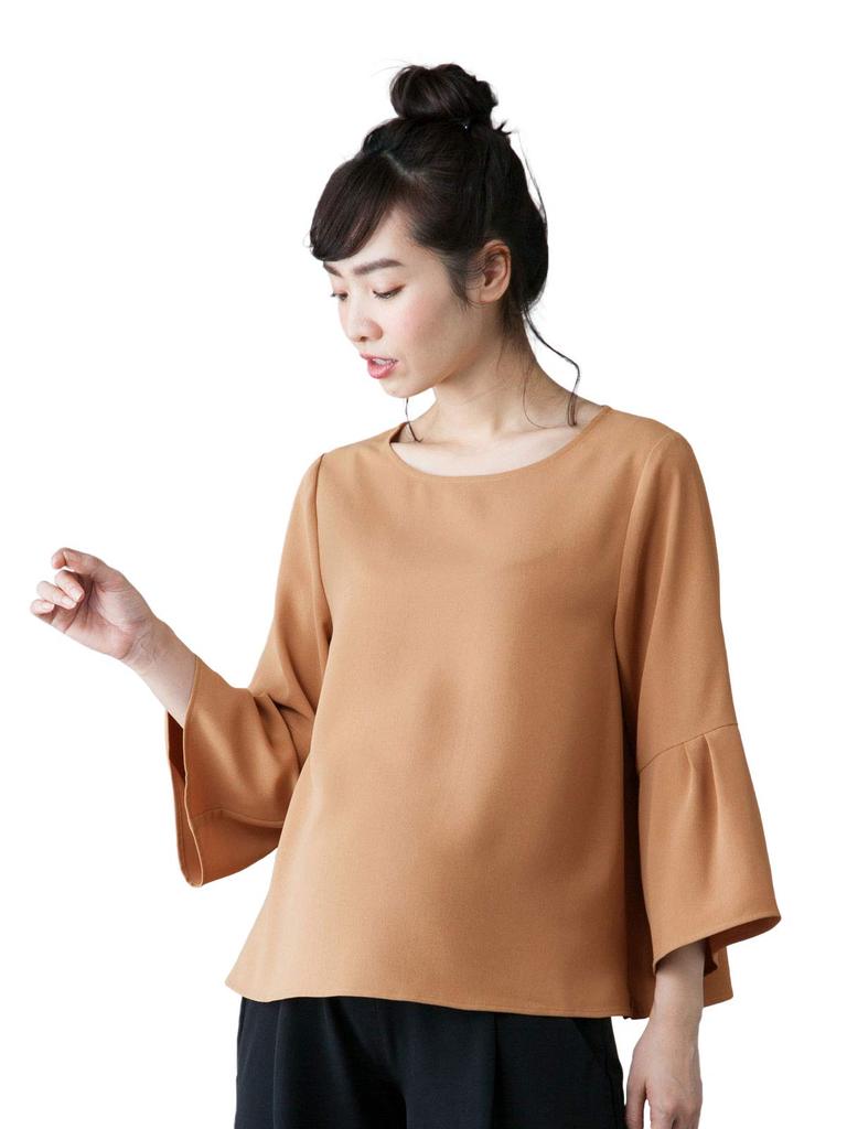 ANGELIEBE Maternity with Nursing Mouth Tuck Flare Sleeve Blouse Nursing Clothes Prenatal and Postnatal Beige 22551 22551301 S-M