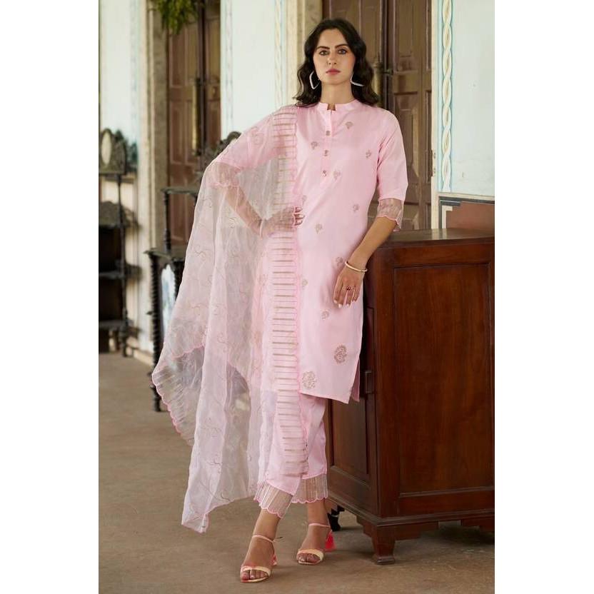 Indian Designer Silk Blend Kurta Pant Dupatta Set Women Party Wear Tunic Kurti SC-2122