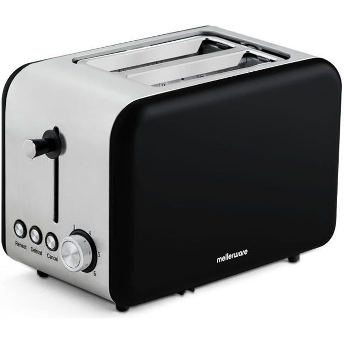 Grille-pain croustillant mellerware! dessin original. 2 fentes de 14x4 cm. fonction de réchauffage et de dégivrage (noir)