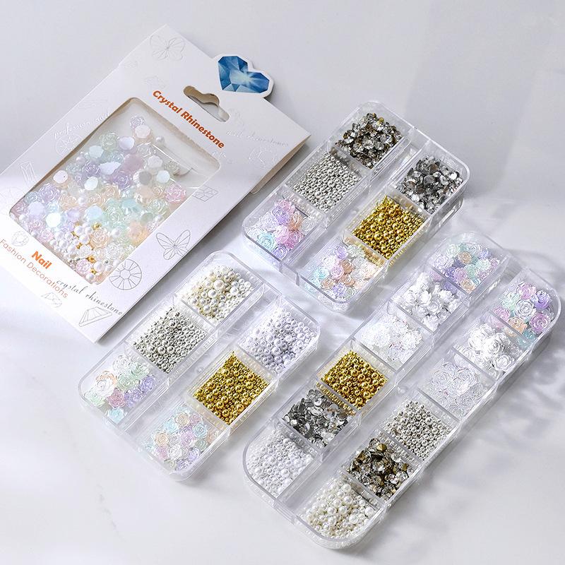 Color Camellia Nail Art Jewelry Diamond Mixed 6 Grid 12 Grid Set Nail Art Ornament Nail Art Accessories Material Pack
