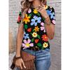 Blommiga 3D-tryckta T-shirts Sommar Ny Rund Hals Kortärmad Andningsbar Lättviktsväv för Dam Casual Sport T-shirt Topp