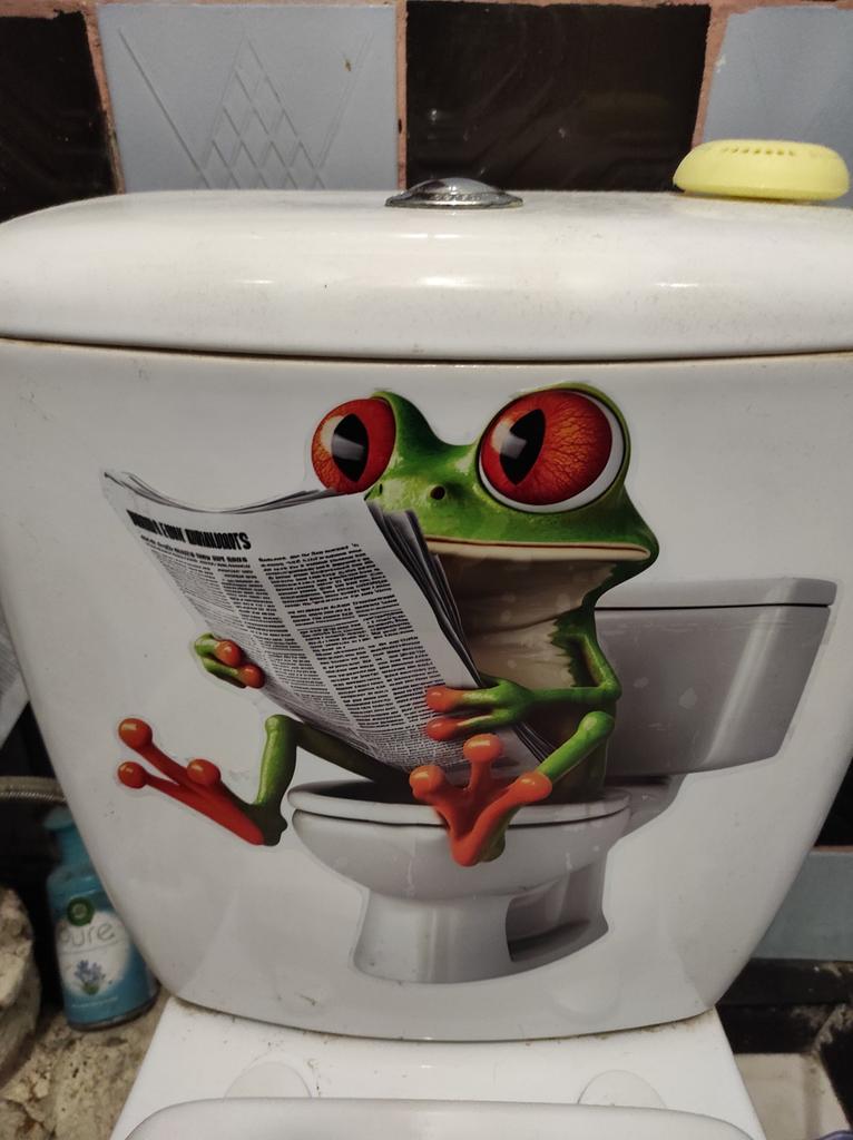 Tecknad Söt Groda Läser Tidning Toalett Badrum Badrum Dekorativa Klistermärken