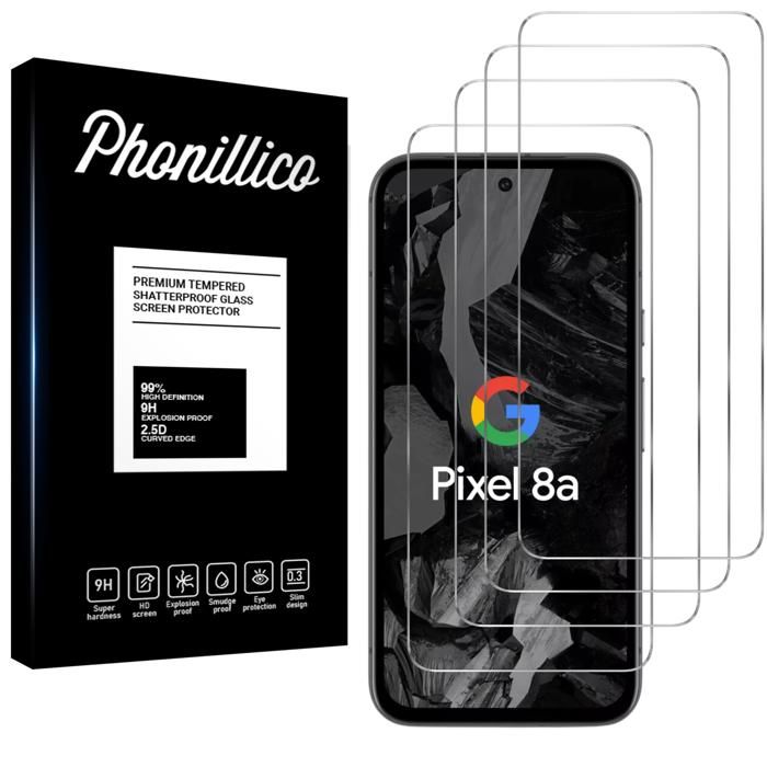 Härdat glas - Phonillico - Google Pixel 8a - 4-pack - Reptåligt - Transparent