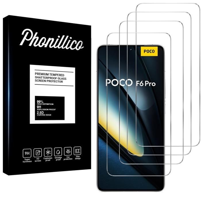 Skärmskyddsfilm - Phonillico - Xiaomi Poco F6 Pro 5G - 4-pack - Härdat glas - Reptålig