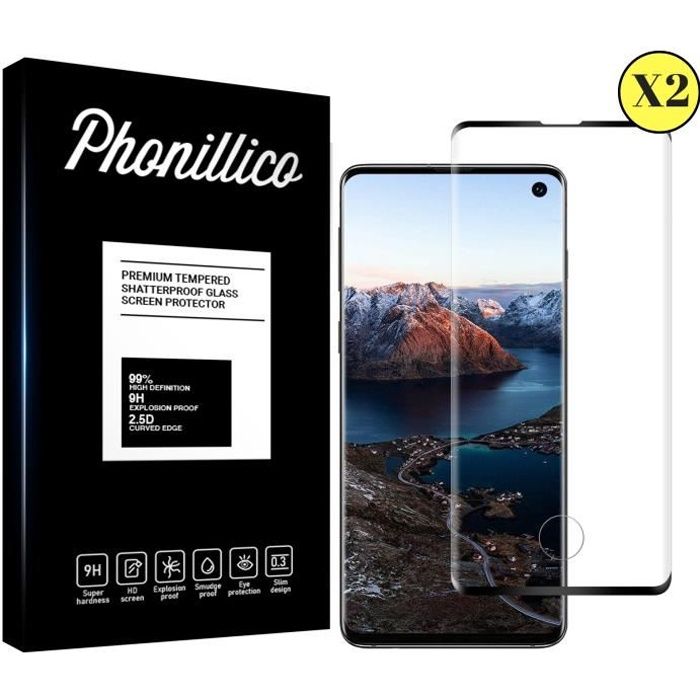 Verre Trempé - Phonillico® - Samsung Galaxy S10 - Pack de 2 - Transparent - Bord Noir - Résistant aux rayures