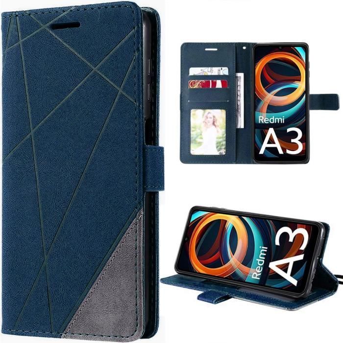 Coque de protection - E.F.CONNECTION - Pour Xiaomi Redmi A3 - Cuir PU Rétro - Antichoc - Porte-cartes et Support