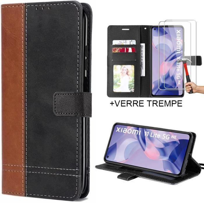 Coque pour Xiaomi Mi 11 Lite Effet Cuir Marron Bicolore + 2 Verres Trempés Anti-Rayures