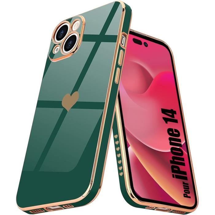 Skyddsskal - E.F.CONNECTION - för iPhone 14 - Midnattsgrön - Hjärtmönster - Stöttåligt - Slim