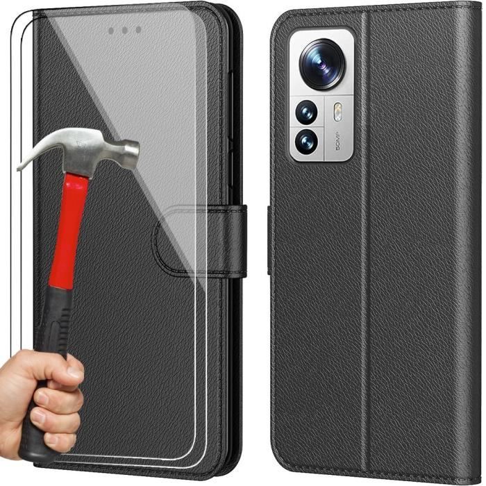 Coque - E.F.Connection - pour Xiaomi 12-12X - Effet Cuir - Fermeture Magnétique - 2 Verres Trempés