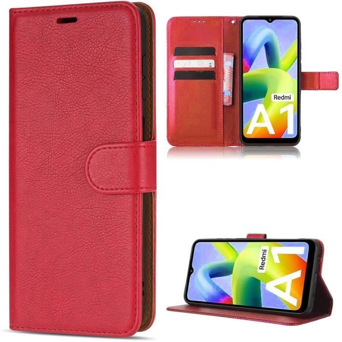 Skyddsskal - E.F.CONNECTION - För Xiaomi Redmi A1/A2 - Stöttåligt - Plånbok - PU-läder Rött