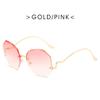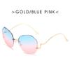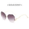 Gradient Fashion Sun Glasses Brand Designer Irregular Round Sunglasses Metal Curved Temples Female Rimless Oculos De Sol