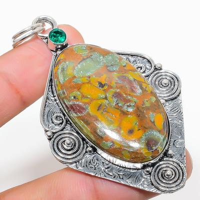 Naturlig Kambaba Jaspis,Tsavorit Ädelsten 925 Sterlingsilver Hänge 2.01" W1f57