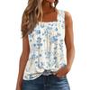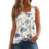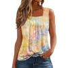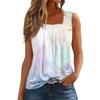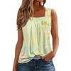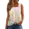 Dam Mode Casual Plisserad Fyrkantig Krage Ärmlös Väst Tryck Sommar T-shirt