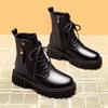 Martin-kängor med inre höjdökning dam 2025 nya mångsidiga korta stövlar svarta remmar koreansk version sidodragkedja rund tå medelhög klack enkel stövel