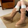 Mellankalv Platt med Vinter Snöstövlar Slip-on Rund Tå Damskor på Rea 2024 Hög Kvalitet Mellanhäl Enfärgad Spänne Stövlar