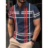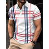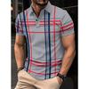 Herrars vardaglig randig tryckt pikétröja med kort ärm och slag