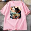 Kawaii Katt Anime T-shirt Ramen Japansk Rolig Grafisk T-shirt Kawaii Nudelkatt T-shirt Man Kortärmad T-shirt Harajuku Kläder
