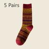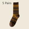 5 Pairs of Female Spring and Autumn Retro Folk Wind Tube Pile Socks