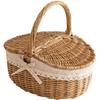 Picknickkorg med stor kapacitet med lock, flätad korg av rotting och bambu, hushållsförvaring för frukt och snacks, utomhuskorg av rotting