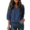 Spring and Summer Jacquard Drawstring Hollow V-neck Solid-color Sleeved T-shirt Top