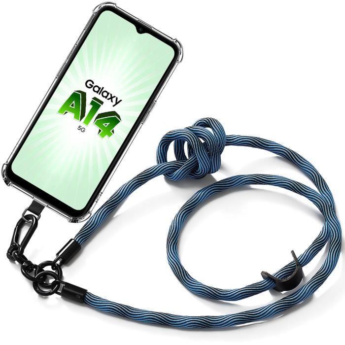 Coque de protection - BOOLING - pour Samsung Galaxy A14 4G/5G - Souple - Transparente - Cordon amovible bleu