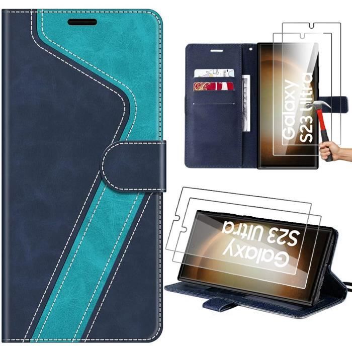 Coque pour Samsung Galaxy S23 Ultra, Bleu, Protection Folio en Cuir PU à motif avec Fentes pour Cartes et Support (pas pour S23)