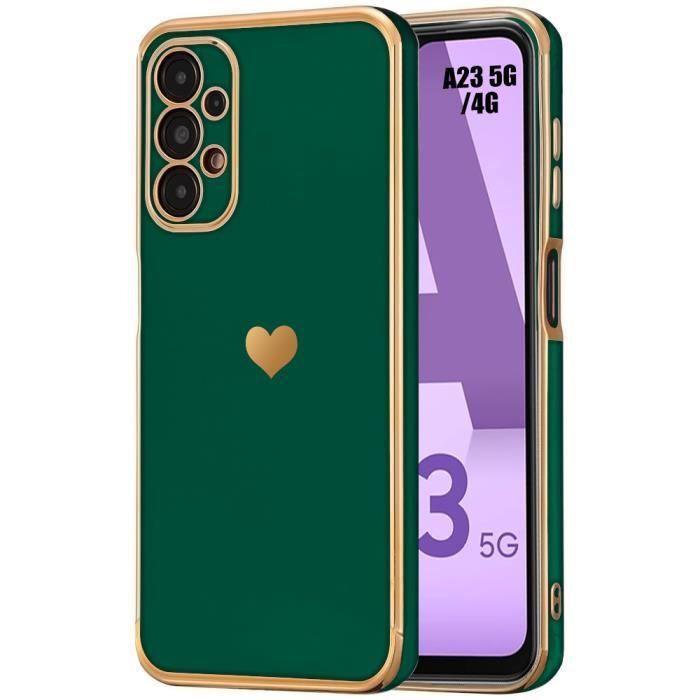 Coque de protection - BOOLING - pour Samsung Galaxy A23 4G-5G - Souple TPU - Motif Cœur - Vert Nuit
