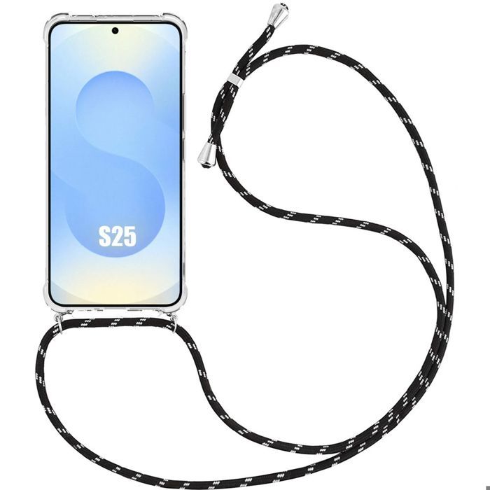 Coque pour Samsung Galaxy S25 - Protection Antichoc avec Cordon Noir - BOOLING
